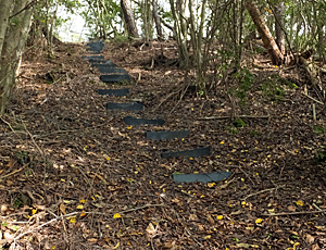| この黒い階段 中電の鉄塔巡視路 登り切った稜線に・・・ |