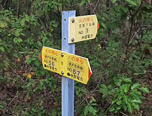 | おや、ここの指標ははっきりしている! 12:56 下は「瀬戸笠原線のNo.56とNo.57」 上は「笠原下石線のNo.1」 |