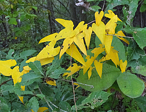 | ヤマノイモ:ヤマノイモ科 きれいに黄葉していた むかごは1つきり・・・ |