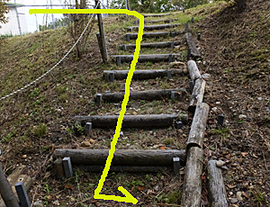| 水道タンクの横を通り・・・13:21 | 階段を降りれば、 ぐるり一周してきたことになる |