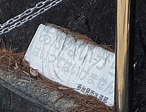 水道ンクの右を通って・・・ (多治見市水道部)の文字 |