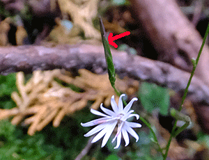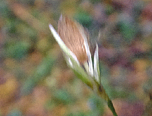 | キッコウハグマ:キク科 この時期咲いていることを期待していたが 少々遅かった 殆んどは、こんな種になっていた ↑左 これは、閉鎖花(へいさか)=『花が開かないまま自家受粉して種を作る仕組み) 羽毛のような冠毛(かんもう)だった 右 ↑ ピントを合わせるため、指の上に置いてパチリ とがったつぼみのようなものが、「閉鎖花」 |