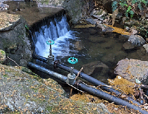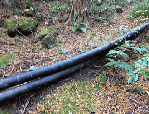 | 太いパイプ2本をまたいだ このパイプは、 → ここから水を取っているようである そういえば「不動の滝」付近まで 伸びていたことを思い出した |