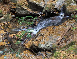 | 水量が多くてどこに足を置こうか・・・ 元気なら、ぽ〜んと飛び越せそうだが ちょっとね・・・ |