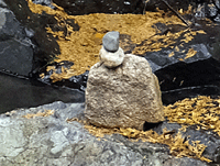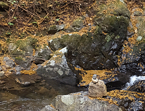 | ↑ こんな沢を渡る場所がいくつもあった ふと左手を見ると、石のケルン やっぱり、このコースでいいらしい・・・と少しホッとできた |