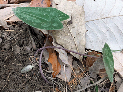 | スズカカンアオイの葉っぱとつぼみ まだまだ開花には早い |