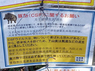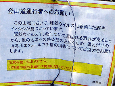 | ↑ 『この山域において、 豚熱ウィルスに感染した野生猪が見つかっています』・・・と |