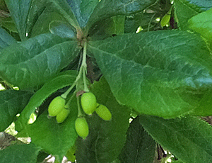 | ヘビノボラズ:メギ科 ↑ 左 湿地の木橋の傍になっていた ↑ 右 若い実はこんな感じ (同じ場所で・2020/5/14撮影 参考のため借りてきた)) |