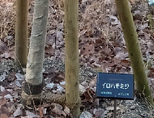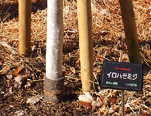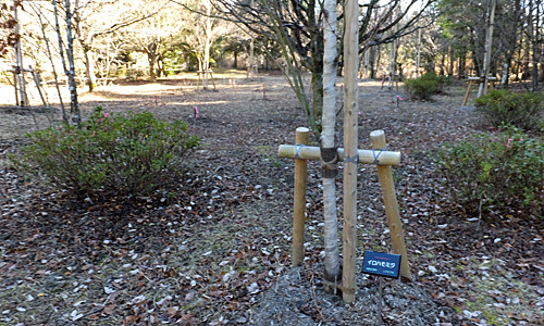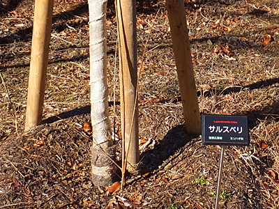 | 新しい名札ができていた ↑ (白い布?を巻かれた木が、新しく植樹された木らしい) |
