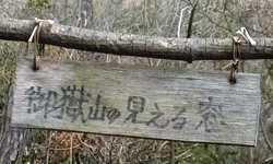 | 運動不足解消のために、近場の山を歩くことにして 今日で4回目 ミニバイクを路肩に停め、すぐ山道へ 昨日の白い山の景色よもう一度・・・と思って 展望のいいコースにした しかし、雲が多くて残念! 白い山はとうとう最後まで見えなかった・・・ ↑ ここは、地元の人が作って下さった 枠のある小さな展望地 今日は残念、雲の中 |