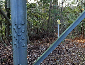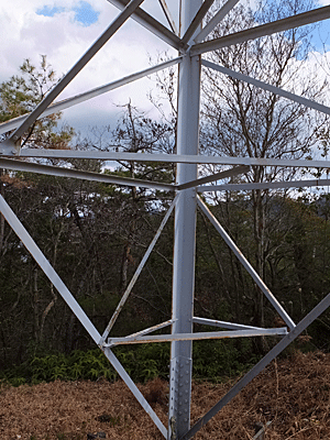 | 三角点のすぐそばに鉄塔 番号が書いてないので、何番鉄塔か分からず |