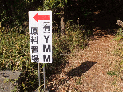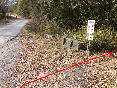 | 「(有)YMM 減量置き場」の車道に出た (以前は「前田陶料」と書いてあった) そうそう、この車道を横切って、 次の山を登ればいい |
