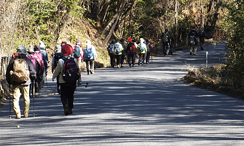 | ・・・・・・・・・・・・・・・・・・・ 今度は集落の端を歩いて、 元の駐車場全員集合場所のJへ戻った お疲れ様〜 怪我人は無く(転んだ・滑った・足が攣ったはあったけれど)、 無事終了〜 解散 14:50頃 ・ー・ー・ー・ー 歩いた距離 約11km 歩数 約1万8500歩 行動時間 約5時間40分 |