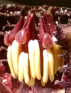 | ↑ スズカカンオイの花-2 この萼筒の中に 雄しべや雌しべがあるのだが はっきりとは見えない ・・・・・・・・・・・・ カッターで切って中を見たのがこれら ↓ 参考のため借りてきた 2019/2/2 2/4 |