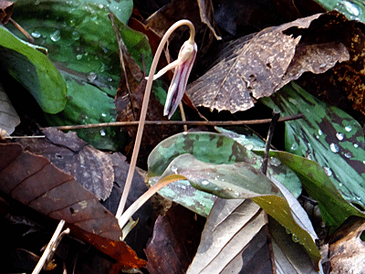 | カタクリ:ユリ科 所が、こんな状態ばかり・・・ つぼみのある株も数える程・・・ まだまだ状態だった |