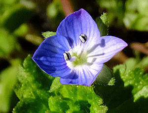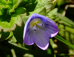 | オオイヌノフグリ:オオバコ科 よく見かける花だが、 ここの花は紫がかっていて ふと目を惹かれた フツ―は、青色というか瑠璃色 |