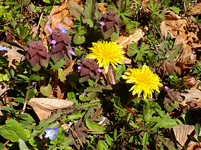 | タンポポ・ヒメオドリコソウ・オオイヌノフグリなど 春の花の勢ぞろい |