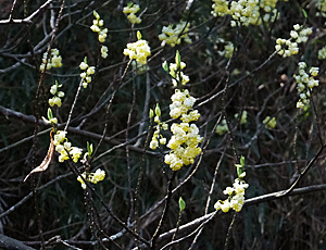| アオモジ:クスノキ科-2 こちらは比較的近くで、見えたが 手を伸ばして届くことは無い・・・ なぜ、この地域だけに多いのだろう? 人間が植えた? 何かの効用を期待して植えた?? |