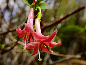 | ウグイスカグラ:スイカズラ科 今日はこれがお目当て 予想通り咲き始めていた 『葉柄が見分けるポイント ウグイスカグラは無毛 ヤマウグイスカグラは毛が密生 ミヤマウグイスカグラは毛と線毛が密生』・・・だって ↓ |