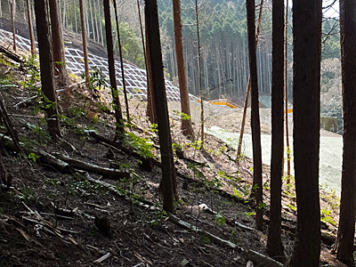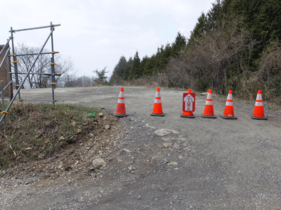 | ここから「かさはら潮見の森遊歩道」が始まる入口 車道が延伸してきて、この先は通行止め |