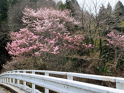 | サクラの仲間:バラ科 橋の右手のサクラは、満開状態 |