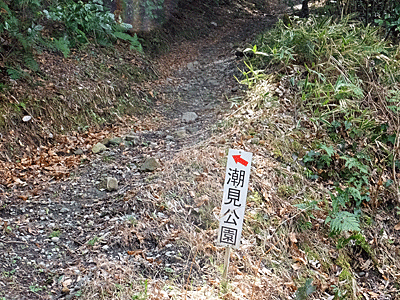| 「かさはら潮見の森遊歩道」の看板 ここから笠原小学校へ行ける |