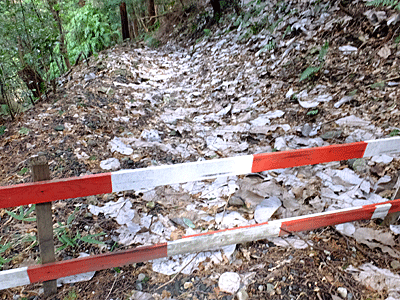 | 旧道は、通行禁止 ホウ葉が山積み そんなに、ホウの木が多いとは知らなかった・・・ |