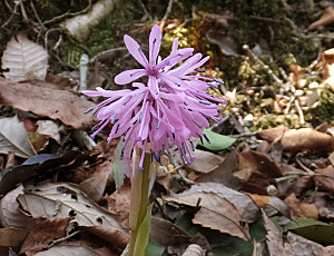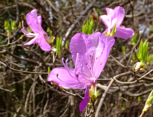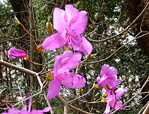 | コバノミツバツツジ:ツツジ科 麓近くでは咲き始めていたが、 上へ行くにつれ、こんなピンク色はゼロ! |