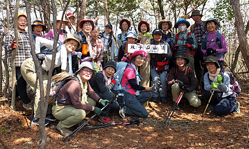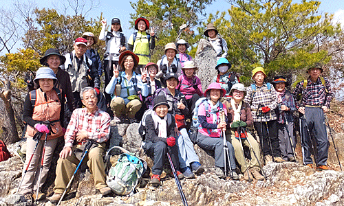 | 八木山山頂 ここで、羽場駅へ下山するグループ(4名)と、 坂祝駅へ行くグループ(18名)に分かれた |