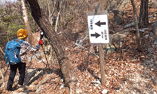 | 八木山手前の分岐 右へ行くと鎖場経由 |