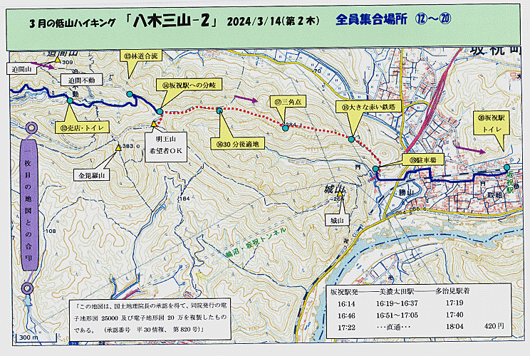 | 坂祝駅で、多治見行き17:22発の列車に乗車 ・・・・・・・・・・ 歩いた距離 約16km 歩数 約2万4000歩 行動時間 約7時間20分 |