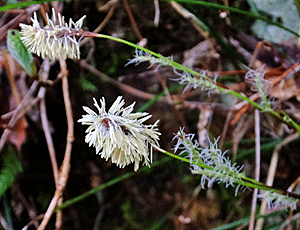 | カンスゲの仲間:カヤツリグサ科 先端にある穂状の部分は、雄花 その下にあるふわふわした部分が雌花らしい |