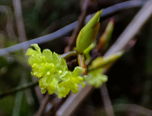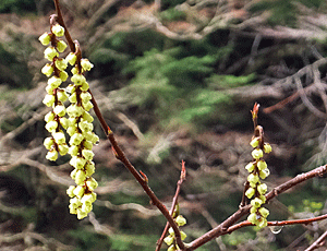 | シロモジ:クスノキ科 花と葉っぱが一緒 去年の葉もついているのですぐ分かった |