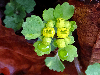 | コガネネコノメソウ:ユキノシタ科 黄色い箱の中に、 きっちり雄しべと雌しべが入っているような形 |