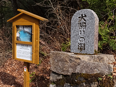 | 「犬帰りの淵」の説明板と石碑 9:22 |