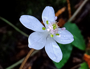 | ゴヨウオウレン:キンポウゲ科 ゴヨウオウレンは、あるにはあったが 咲いたばかりの初々しいj花は少なく 花びらが落ちたり、種になりかかったりしている株が多かった |