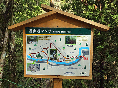 | ↑ 遊歩道マップ 所要時間が書いてあるが、花を見て、川を見て行くと この時間では歩けない |
