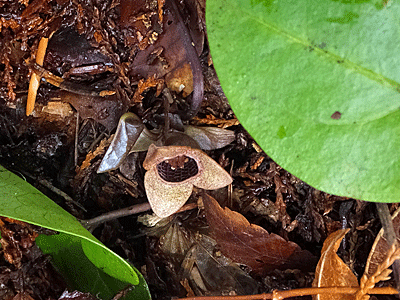 | ヒメカンアオイの仲間:ウマノスズクサ科 葉っぱはあったが、花はまだ少ない |