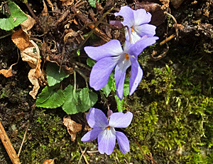 | タチツボスミレ:スミレ科 日が当たらないうちは、下向いてしょんぼり 日当たりが良くなると、正面向きになる |