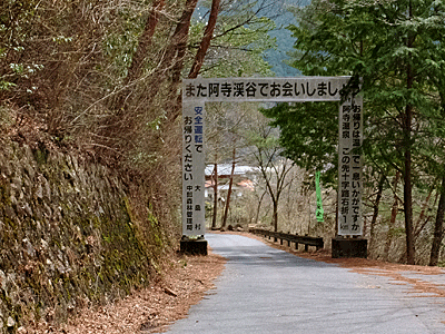 | 阿寺渓谷出口に着いた 12:22 予定していたより早い電車に乗れそうとは分かったが 野尻発の電車を調べようとしても 「インターネットが繋がっていません」だって 仕方ないか・・・ |