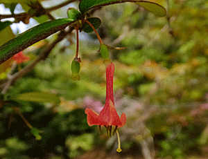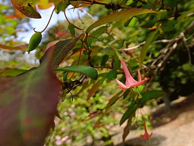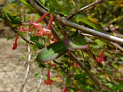 | ウグイスカグラ:スイカズラ科 前回(3/30)は咲き始めたばかりだったが、 今日はもう実の方が多かった |