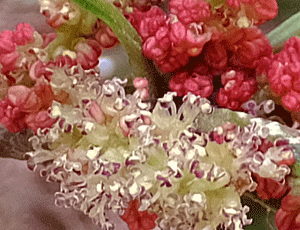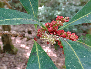 | ヤマモモ:ヤマモモ科 前回(3/30)は硬いつぼみだったが 今日は雄花が弾けていた(咲いていた) |