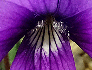 | スミレの仲間:スミレ科 ただの「スミレ」 花の中を見ると毛が生えていた |