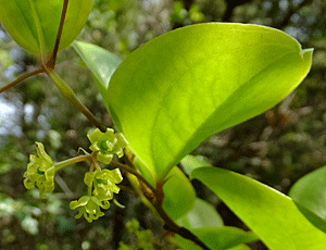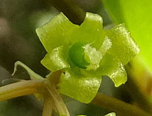 | サルトリイバラ:サルトリイバラ科 これは、雌花・雌株 雌しべの先端(柱頭)は3裂している |