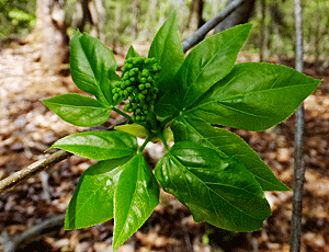 | タカノツメ:ウコギ科 もうつぼみができ始めていた が、まだ柔らかいので、このくらいなら食べられる |
