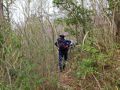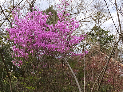| 山道の左右に、ツツジが何本もあって 春らしい華やかさ |