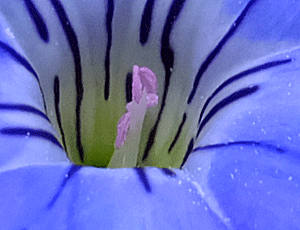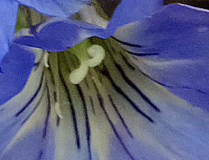 | ハルリンドウ:リンドウ科-3 右 中央の雄しべを拡大 だんだんずれて離れ始めてきた |