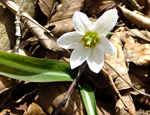 | ヒロハノアマナ:ユリ科 葉っぱが広くて、中央に筋がある(比較のため借りてきた) |