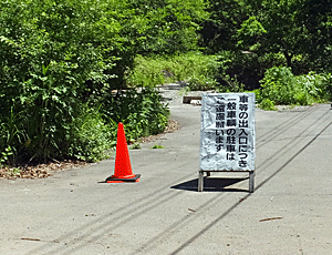 | 広い林道はここまで 10:48 この標識から左折して八島湿原へ |