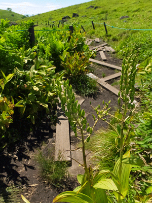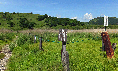 | 『電気柵使用中のお知らせ 車山高原では、シカによる食害からニッコウキスゲ を守るために、電気柵を使用しています。危険ですので 電気柵には絶対に近寄らないでください。 また、車山高原は国定公園内のため、遊歩道わきの グリーンロープから中に入ることは、法律で禁止され ていますのでぜったいに入らないでください 茅野市 車山高原観光協会』だって。 効果があるといいのにね |